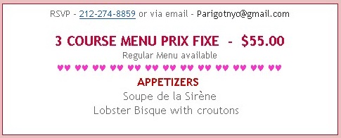 | 2/14 - Celebrate Valentine's Day At Mika Japanese Cuisine & Bar, 150 Centre St Chef's Tasting Menu ($80 For Two-Five Course) - Ika Sea Urchin Salad - Sweetheart Lobster Tempura Roll - Lover's Omakase - Forever's Filet Mignon Or - Sea Bass in Love - Sweet Dream - Ice Cream Tempura - Special Valentine's Drink Cupid Tequila, Pomegranate, Khalua, Hershy's Kiss | | More Info |