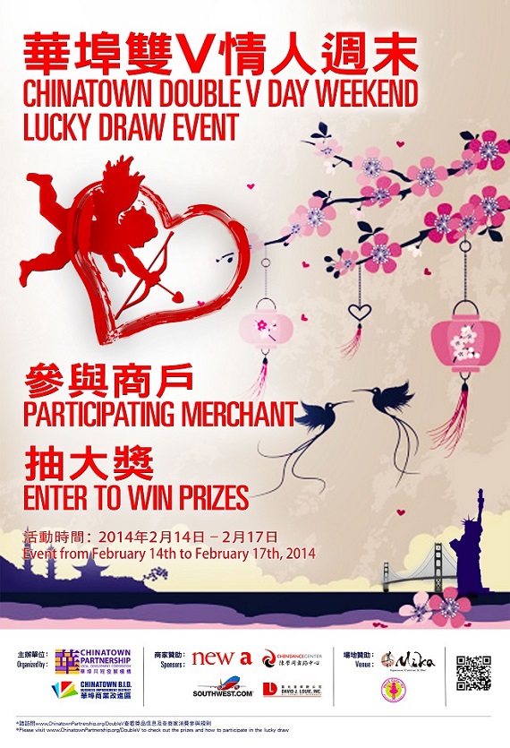 Support Chinatown this Valentine's Day Weekend and Win! Shop and eat at participating Chinatown businesses this weekend and you can enter to win free prizes.